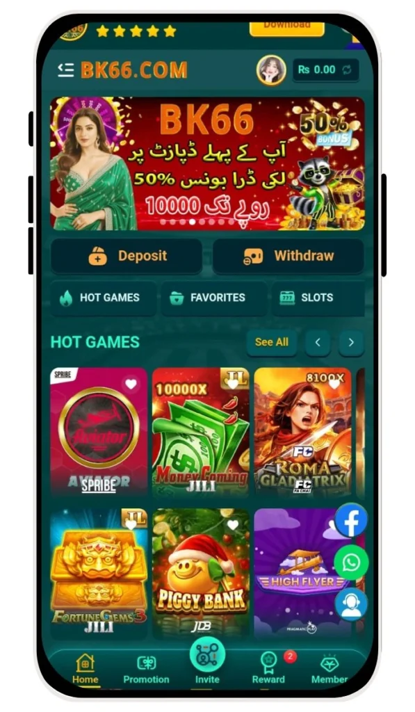 Popular Casino games wait for you inside BK66 online casino Pakistan. You spin BK66 slot machine app titles like Fire Joker for big wins. Moreover BK66 card game app offers Teen Patti and Dragon Tiger with local twists. For example BK66 cricket prediction game lets you bet during live matches.