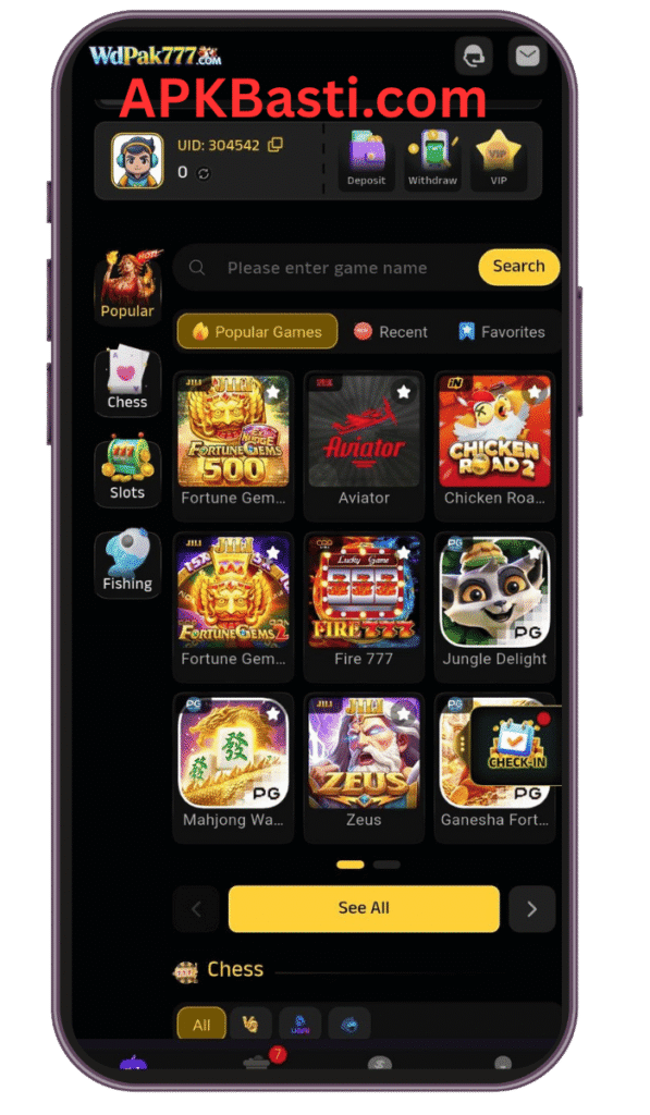 WDPAK 777 is a gaming platform that allows users to play multiple categories of games, ranging from slots and cards to arcade challenges, under a single application. It is specifically made for Android users in Pakistan, focusing on low latency and high-speed performance even on 3G/4G connections.